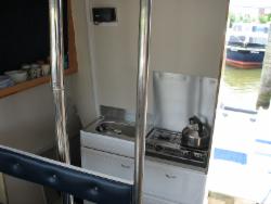 Der Fahrstand befindet sich auf dem Fahrdeck und ist mit einer Klappbaren Persenning vor Sonne und Regen geschützt. Der Motorkatamaran wird vollgetankt übergeben. Der Kraftstoffverbrauch liegt bei 1,5 Litern je Stunde. Supermärkte und Getränkehändler sind in unmittelbarer Nähe vorhanden. Falls etwas an Angelausrüstung fehlt, werdet ihr mit Sicherheit in unserem Angelladen fündig.